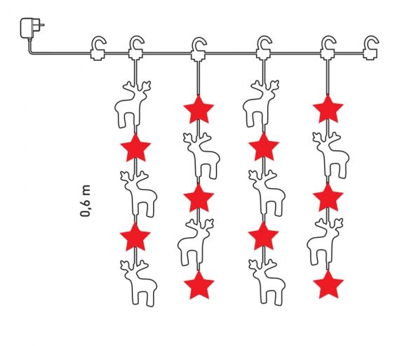 Ezen a fényfüggönyön posztóból készült, aranyos figurák borítják a LED-eket. Kisgyermekes családok nagy kedvence, meleg fehér fénye a szarvas és csillag figurákkal tényleg meseszép dekorációja lehet a gyerekszobáknak, óvodának, játszóháznak, játékboltnak.