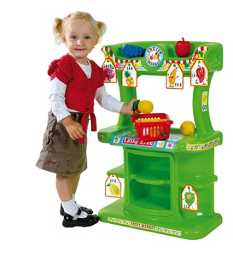 Bruttó ár: 16 990 Ft.Elfogyott!Gyümölcsös stand otthon. Nagy méret-76cm-es magasság. Díszítése matricákkal. Kiváló szerepjátékokhoz. A kislányok kedvence.