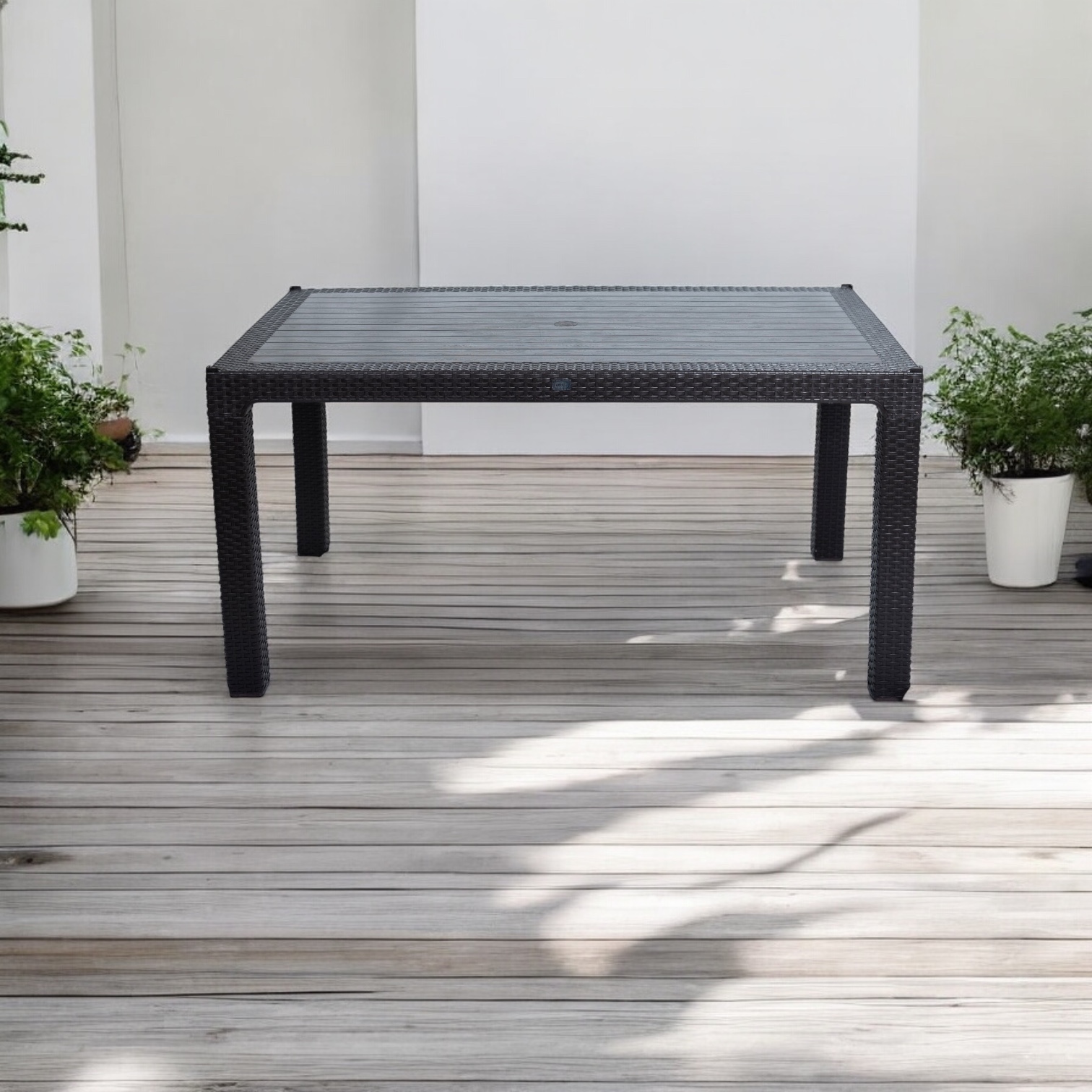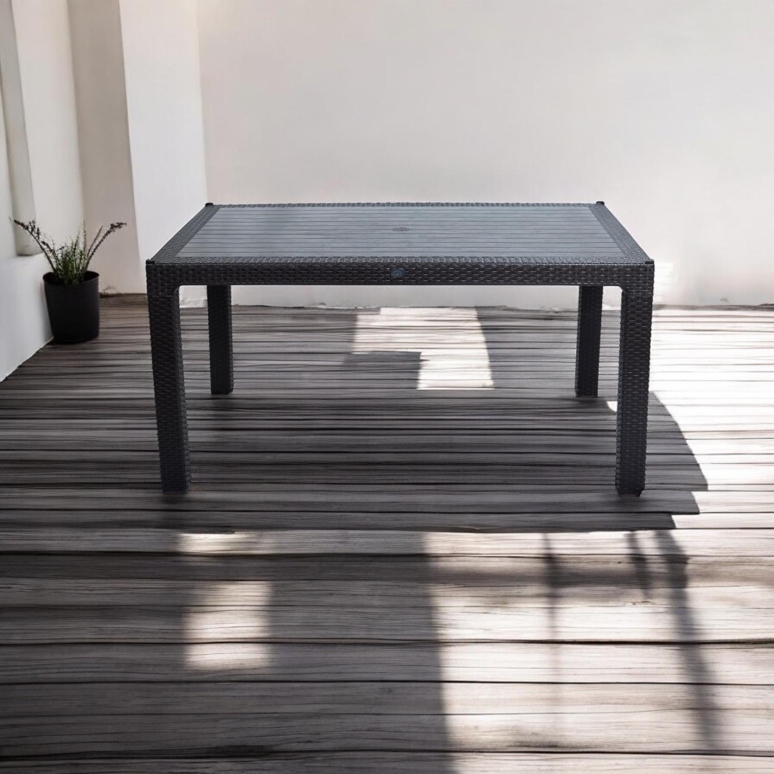 Műanyag rattan hatású kerti asztal antracit szürke 150 x 90 cm