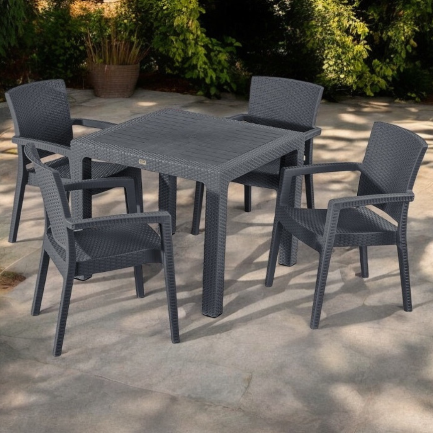 Rattan hatású műanyag kerti asztal antracit szürke,rendkívül erős asztal amely elegáns dizájnal párosul. Barna,antracit és cappuccino színben kapható. Ellenáll az időjárás viszonytagságainak, UV védett. A termék rattan hatású műanyag, így olyan külsővel rendelkezik akár egy igazi rattan asztal.Bárhová kiváló választás akár kertekbe, teraszokra, akár beltérre is.Külön ajánljuk vendéglátó helyekre, kiadó ingatlanokba, rendezvény helyszínekre, strandokra, fürdőkbe.Török termék. Tisztítása langyos vízzel, puha ronggyal történjen, az antracit szürke színű kerti asztaloknál lehetőleg minél gyakrabban, hogy a szürke por ne fakítsa el egy idő után a szép antracit szürke színt!