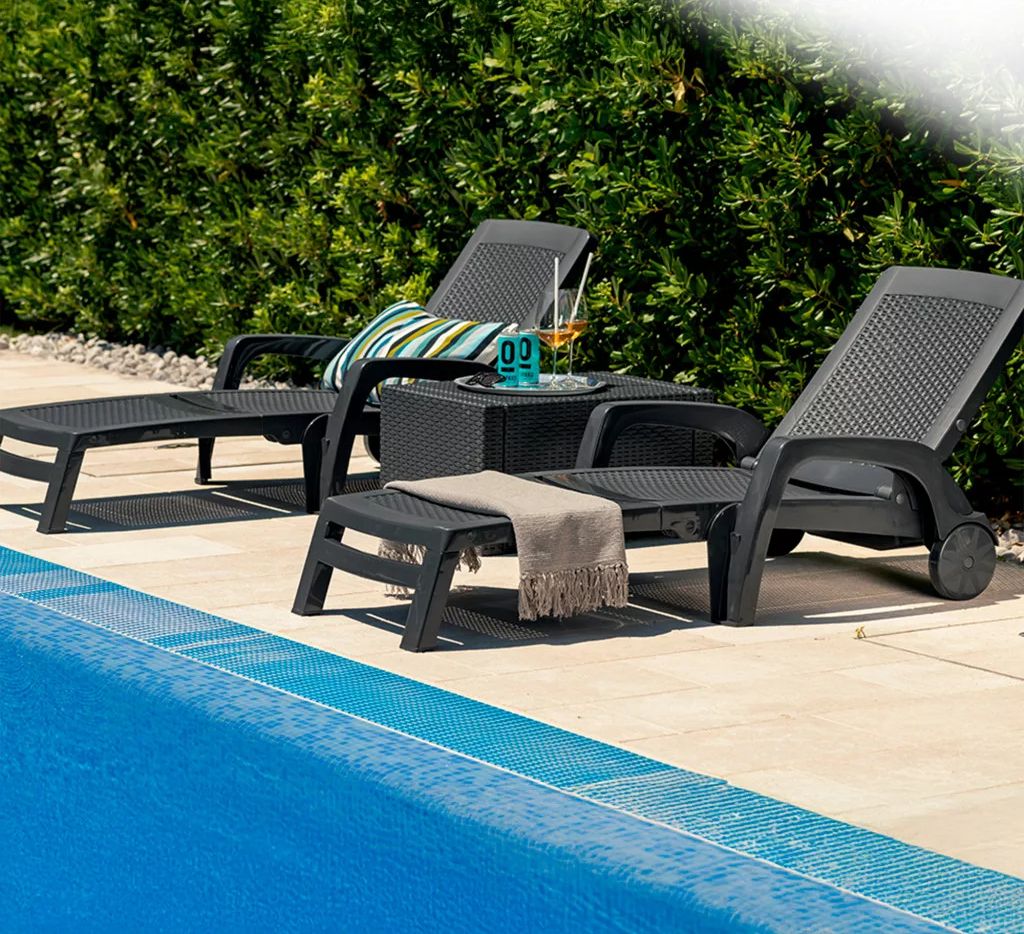Omaha rattan hatású műanyag kerti napozóágy grafit szürke