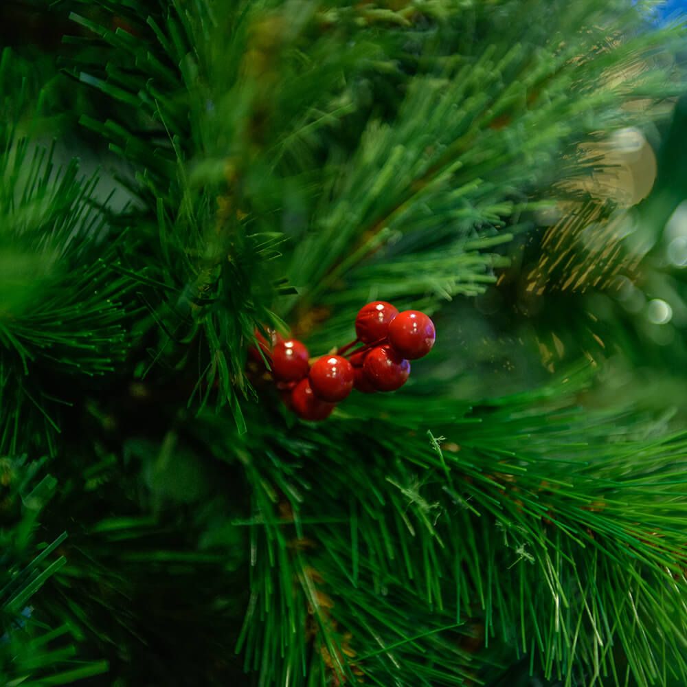 Redberry műfenyő kisebb terekben is jól mutat. A műfenyőt 150, 180, 210 és 240