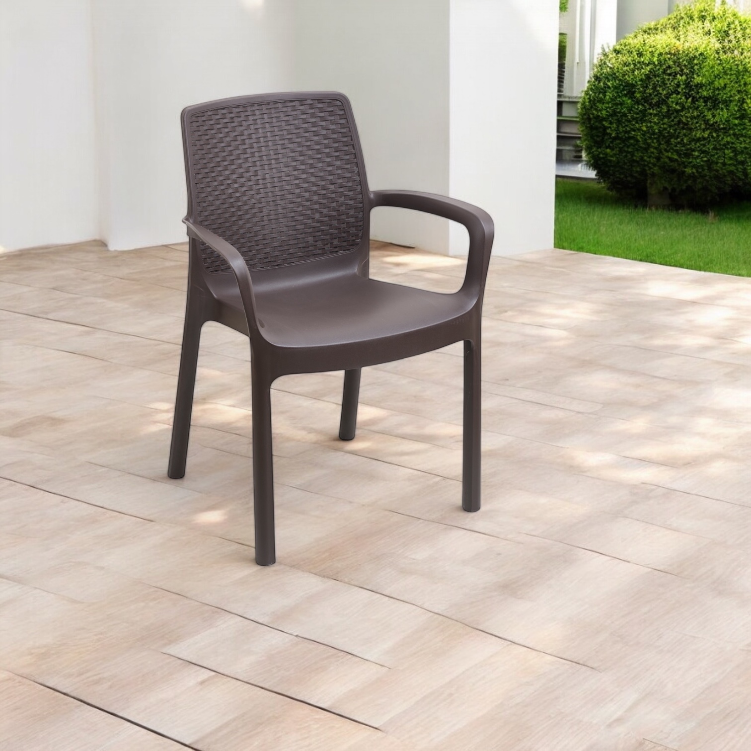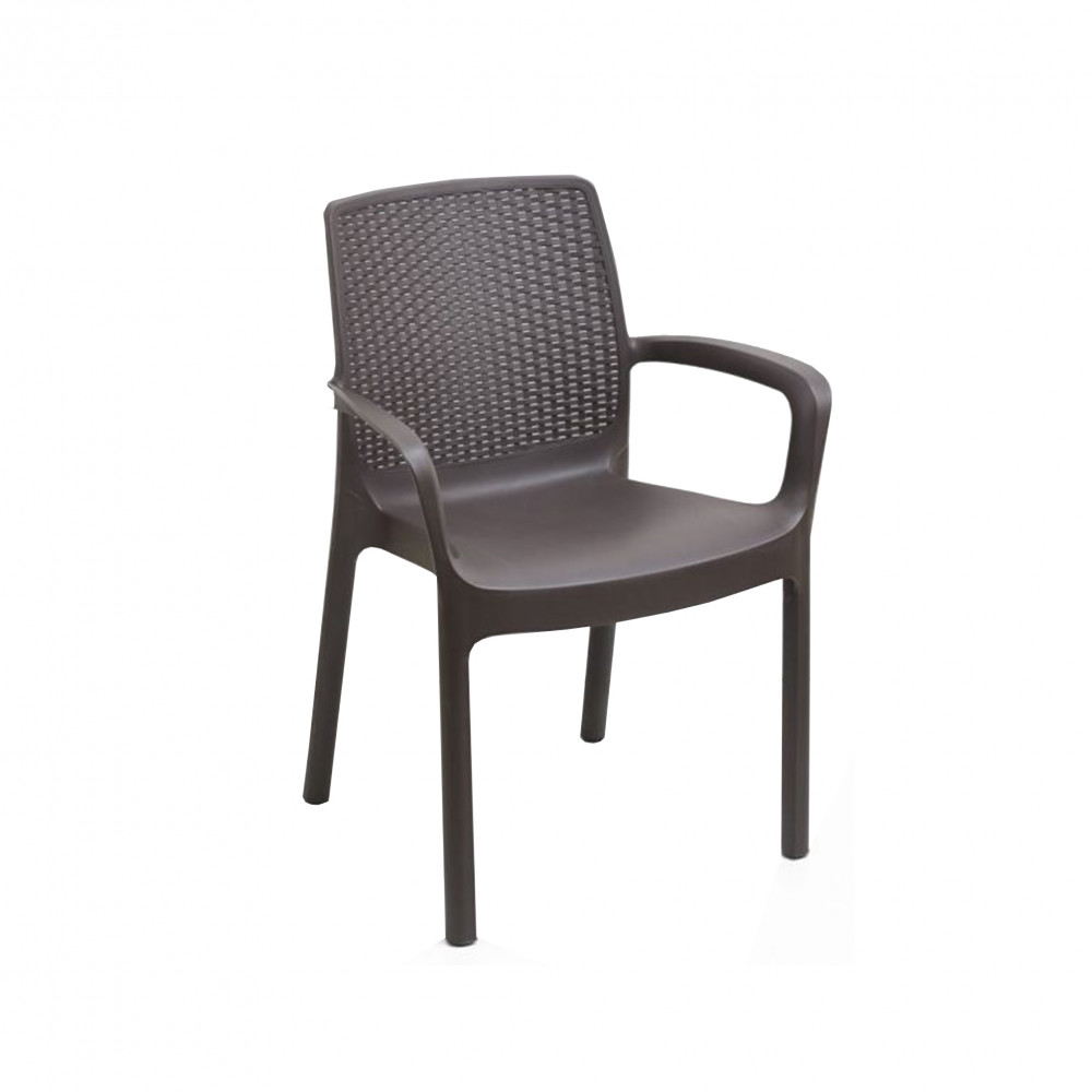 Kora rattan hatású műanyag karfás kerti szék barna Progarden-O241