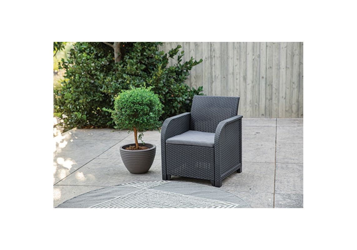 Bruttó ár: 57 990 Ft.Elfogyott!Claire műanyag rattan hatású kerti balkon szett, tárolós asztallal grafit - hűvös szürke Curver-253065