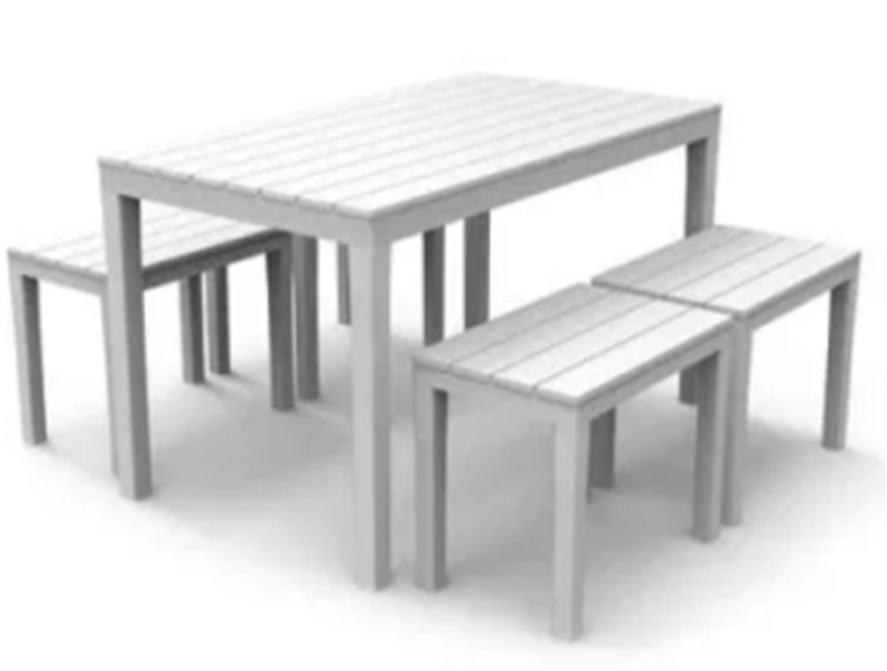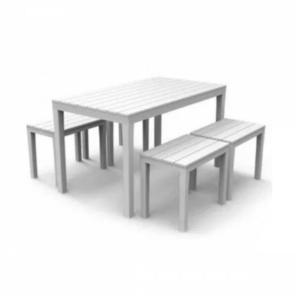 Samoa kerti szett. Fehér színben. Stabil erős kis kerti szett. Jó választás lehet nyaralókba, teraszokra. A kis Timor padokat be lehet tolni az asztal alá, így kevés helyet foglal a szett. Fa hatású.