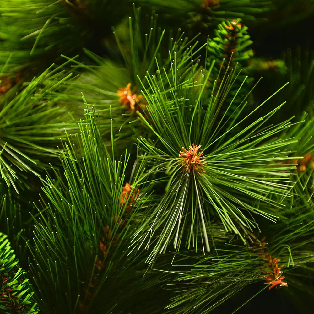 természetes hatású fenyő, a hosszú tűlevelek között kis hajtások bújnak meg. A