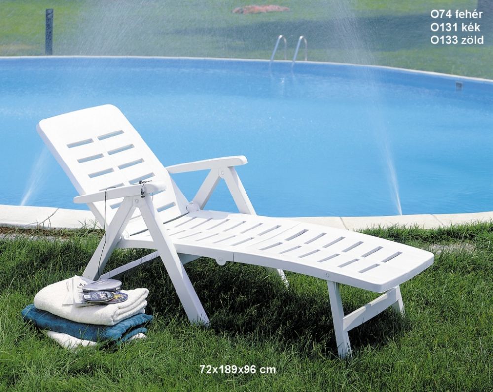 A Smeraldo műanyag napozóágy rejtett kerekes, és összecsukható! Ezek a funkciói biztosítják a könnyű hordozhatóságot, mobilitást, illetve a praktikus tárolást. Háttámlája öt fokozatban állítható, az Ön kényelmének megfelelően! A Smeraldo napozóágy másik kényelmet biztosító tulajdonsága, hogy lábtartóval van ellátva, így az abszolút pihenést biztosítja! Amennyiben ülő helyzetben használja a Smeraldo napozóágyat két kar biztosítja kezének kényelmes elhelyezését, valamint magas háttámla teszi lehetővé a kényelmes elhelyezkedést!
