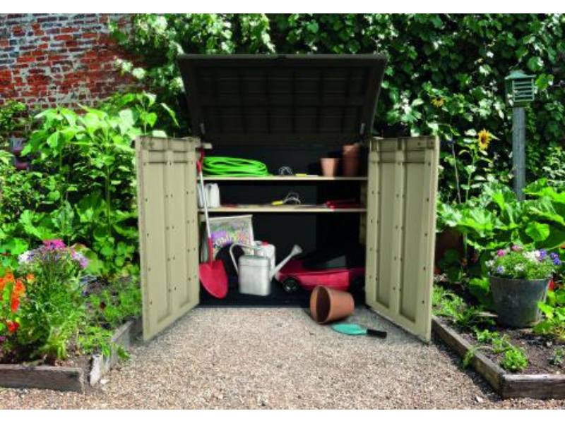 megoldás a kerti eszközök, tartozékok és szerszámok tárolására. Az optimális