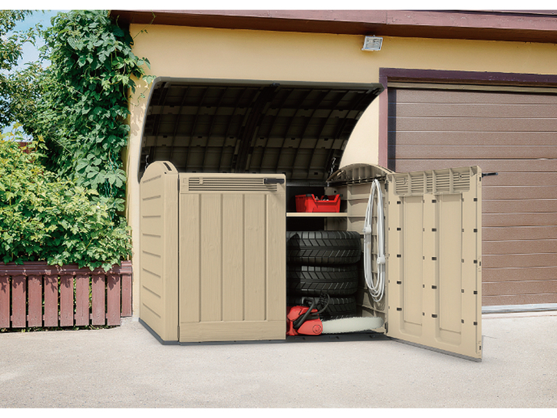 tároló kitűnő megoldás különböző kerti eszközök, tartozékok és szerszámok,