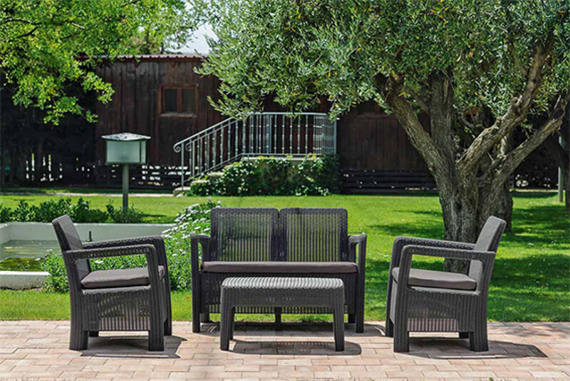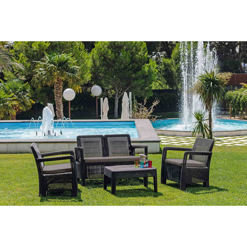 A Tarifa egy lágyan lekerekített, rattant imitáló felületű bútor szett. A szett két fotelből, egy kétszemélyes kanapéból és egy négyszögletes asztalból áll. A szett ideális családi grill vagy kerti parti szervezéséhez. A bútorokat magas tartósság jellemzi, valamint ellenáll az időjárás viszontagságainak és az UV sugárzásnak. Elegáns, hagyományos színekben kapható.
