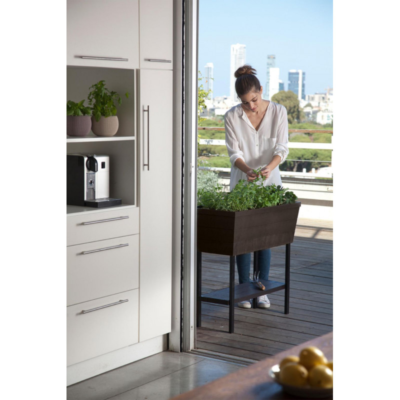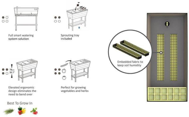 A virágtartó kialakítása mindenkit lenyűgöz. Beépített öntöző rendszerre rendelkezik, valamint vízszint jelzője segít, hogy elkerüljük a növények túlöntözését. Kis tartályok segítik a palánták szervezését. További előny az alsó polc, ahol a növényápoláshoz szükséges eszközöket tárolhatja.