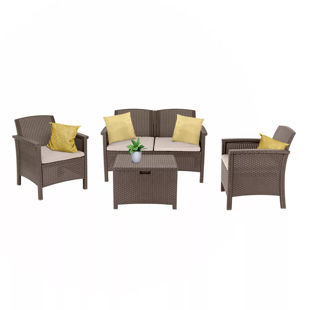 Bruttó ár: 76 990 Ft.RészletekVenus 4 személyes műanyag kerti garnitúra barna