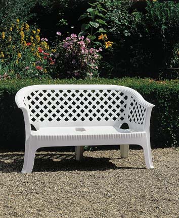 Fehér színben áruljuk szettként. Ellenáll az időjárás viszonytagságainak, és UV álló. Fotelek rakásolhatóak. A pad sok kerti paddal ellentétben, nem 4 hanem 5 lábon áll, emiatt is igaz rá, hogy rendkívül stabil.