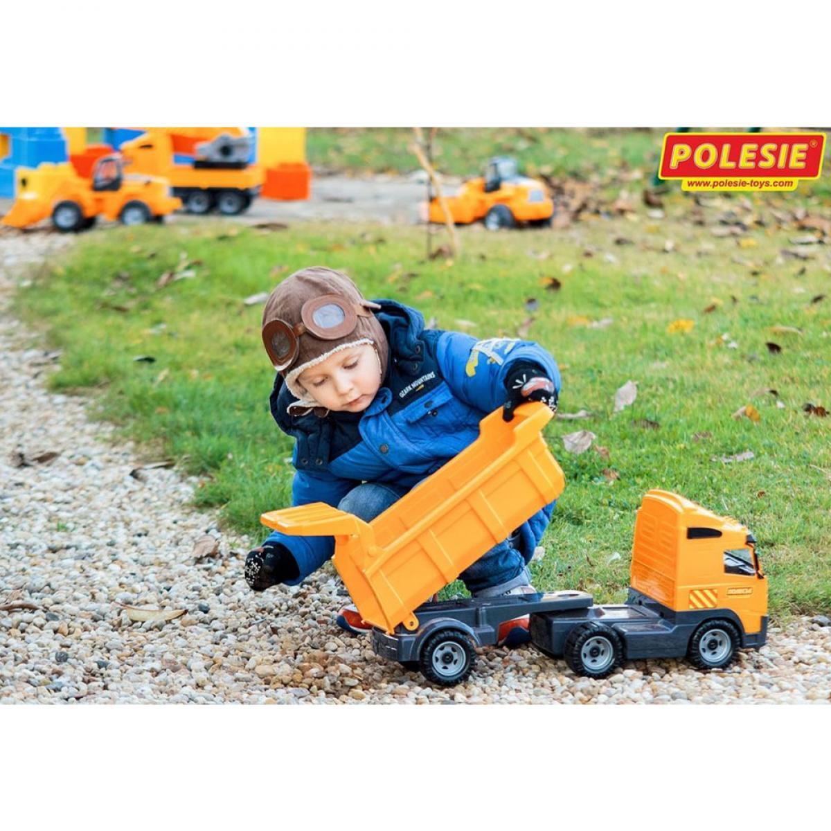 Polesie márkájú Volvo billencs kamion. Nehéz rakományokat szeretnél szállítani? Akkor a Volvo Power Truck billencs csak Rád vár! Járműveddel homokot, kavicsokat vagy akár kedvenc játékaidat is szállíthatod. Billenős platója segít a rakományod könnyebb kipakolásában. Masszív kerekei megkönnyítik a mozgást, élénk színei pedig vidámságot sugároznak.